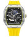 - Barrel-Shaped Design – A bold and modern barrel-shaped case with a skeleton dial, offering a glimpse into the sophisticated automatic movement.